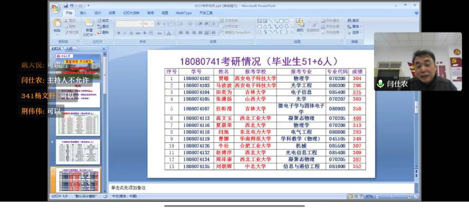 2022年升学就业“护航行动”在线上召开。唐军、梁庭、闫仕农、李辉、姚大悦、安琪、冯旖、李美溪、崔志栋参加了会议,会议由荆伟伟老师主持。