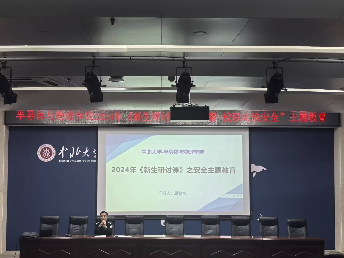于瑾瑜国际会议中心举办以安全教育主题的新生研讨课,旨在通过警校合作,提高学生的安全意识并增强自我保护能力,预防和减少校园安全事故。本次课程由原警官进行授课并由李丰超老师主持。