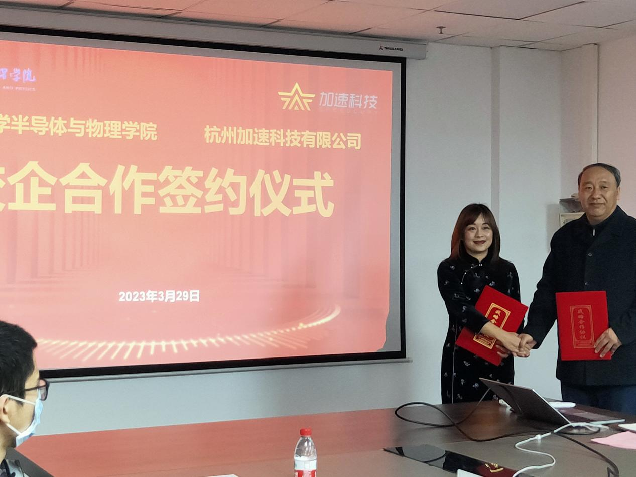 与杭州加速科技有限公司在主楼1319会议室签署校企合作战略协议,蔚蓝档案