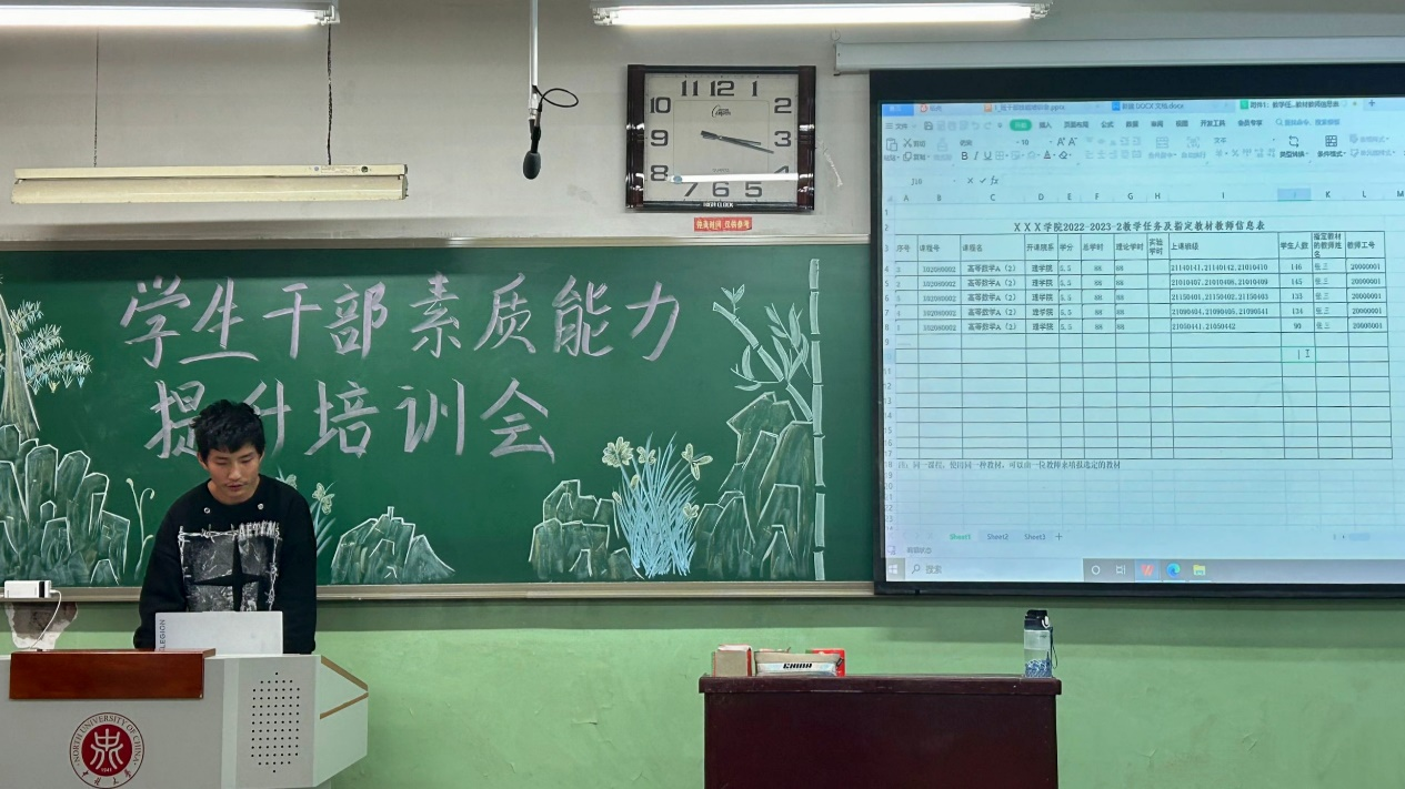 此次学生干部素质能力提升培训会的展开,不仅让同学们了解到常用办公软件的操作,同时让同学们意识到熟练掌握办公软件的重要性,最后希望通过此次培训同学们能够迅速提升办公软件的操作能力,提高工作效率,为学院的建设贡献自己的一份力量