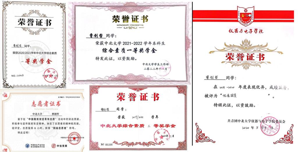 校级、院级优秀团员,优秀志愿者等荣誉称号。