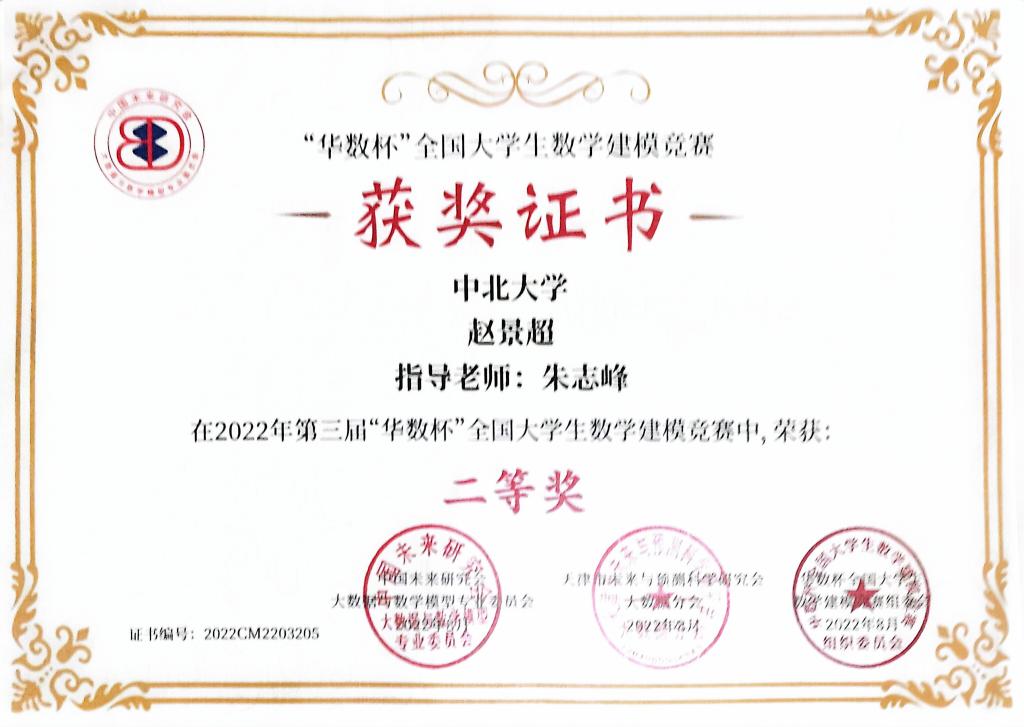 2022年8月 “华数杯”全国大学生数学建模竞赛全国二等奖
