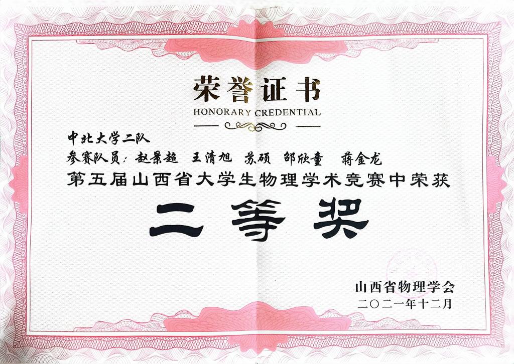 2021年12月 山西省物理学术竞赛二等奖