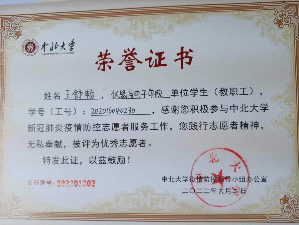 校级、院级优秀团员,优秀志愿者等荣誉称号;