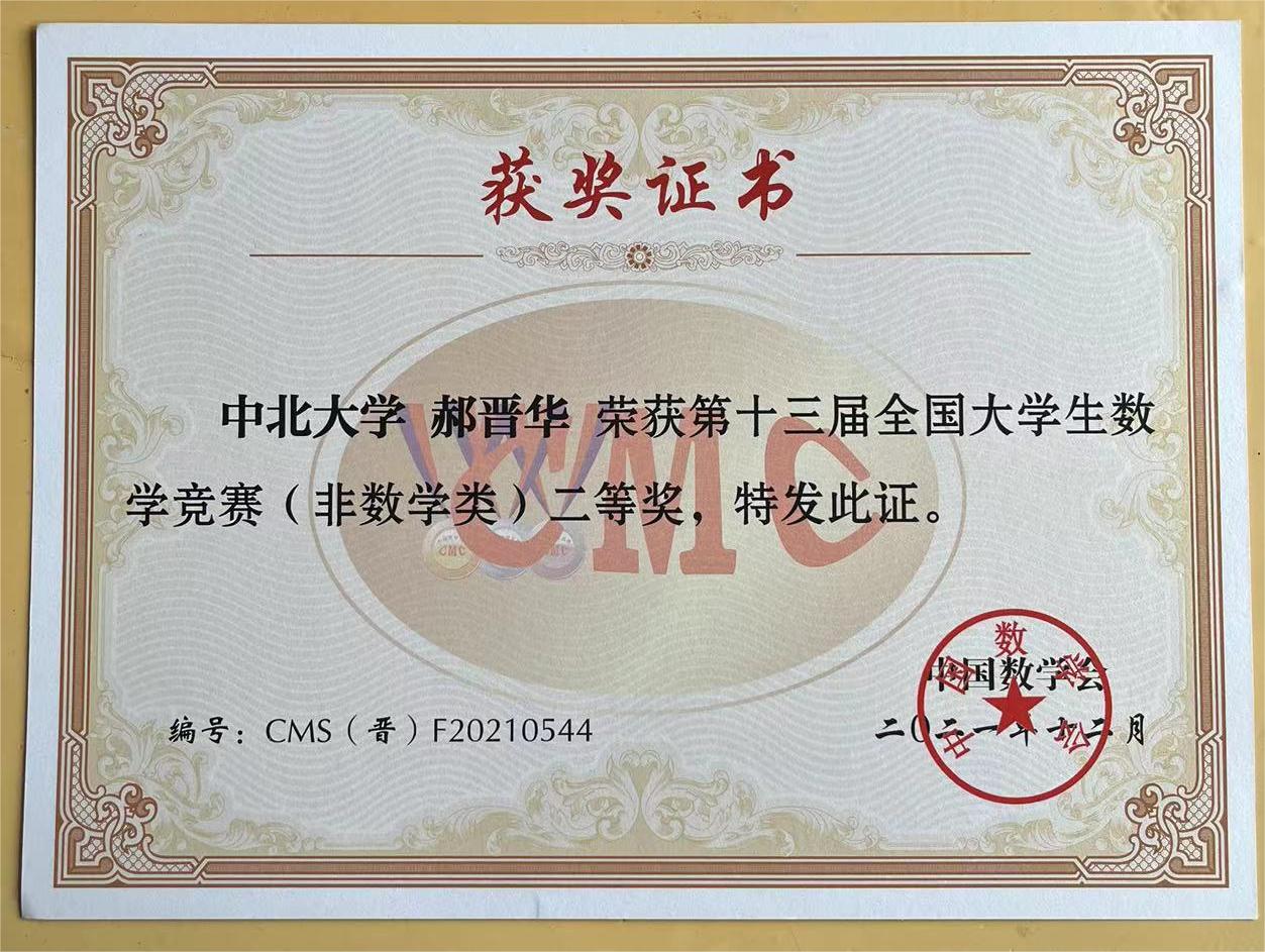 2021.12 获第十三届全国大学生数学竞赛(非数学类)二等奖