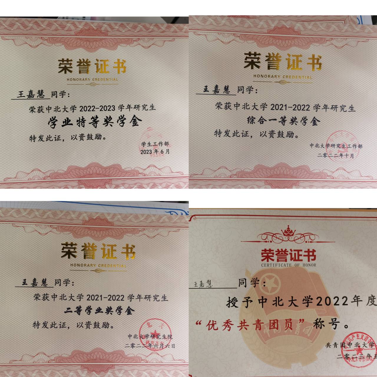 2022年度“优秀共青团员”称号。