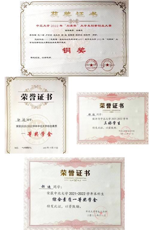 “刘鼎杯”大学生创新创业大赛铜奖等奖励。