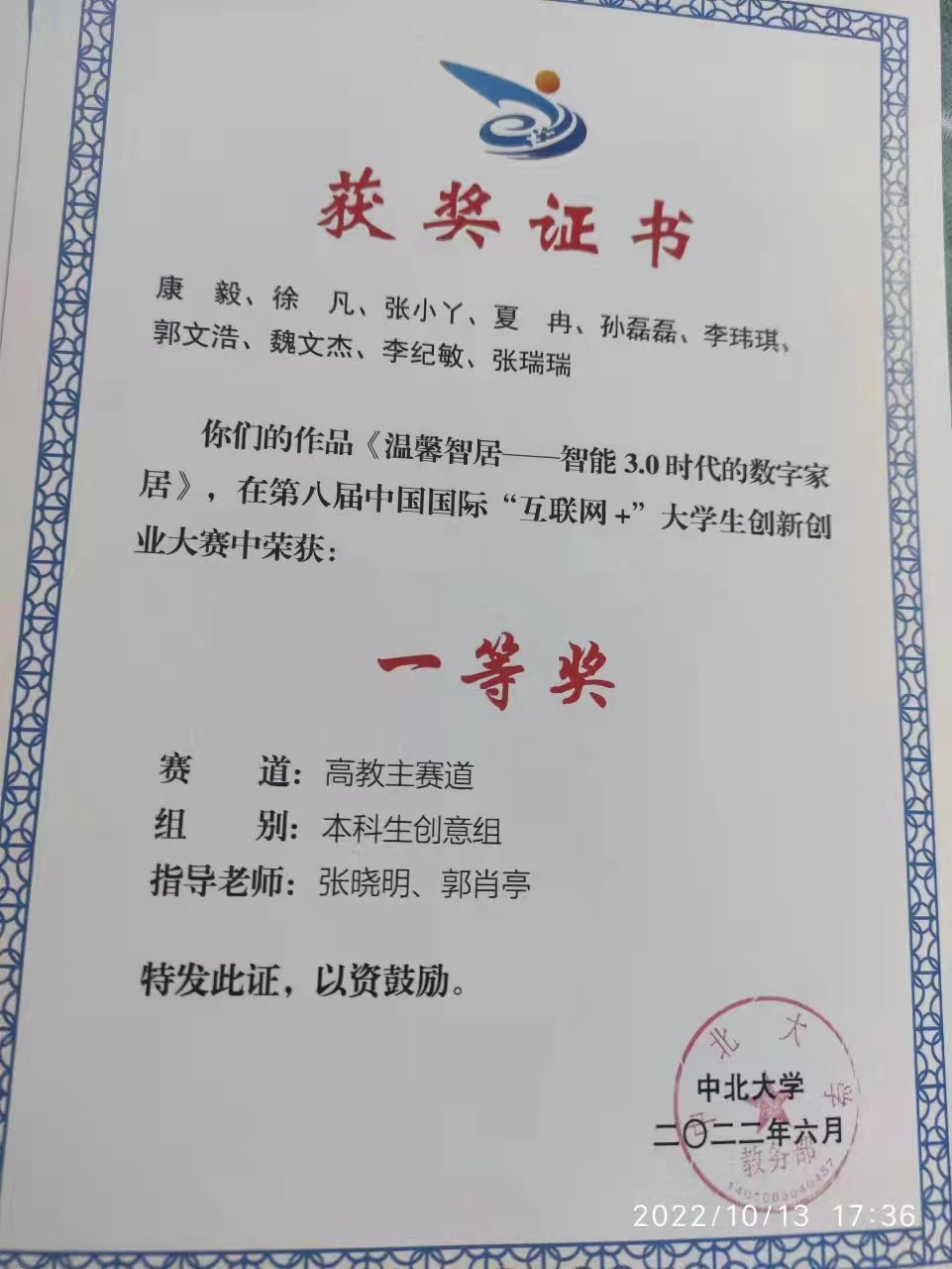 除此之外,我还积极参加了学科竞赛,获得了“互联网+”校级一等奖,积极参与了大学生创新创业训练项目,可惜准备不足,没有成功立项。