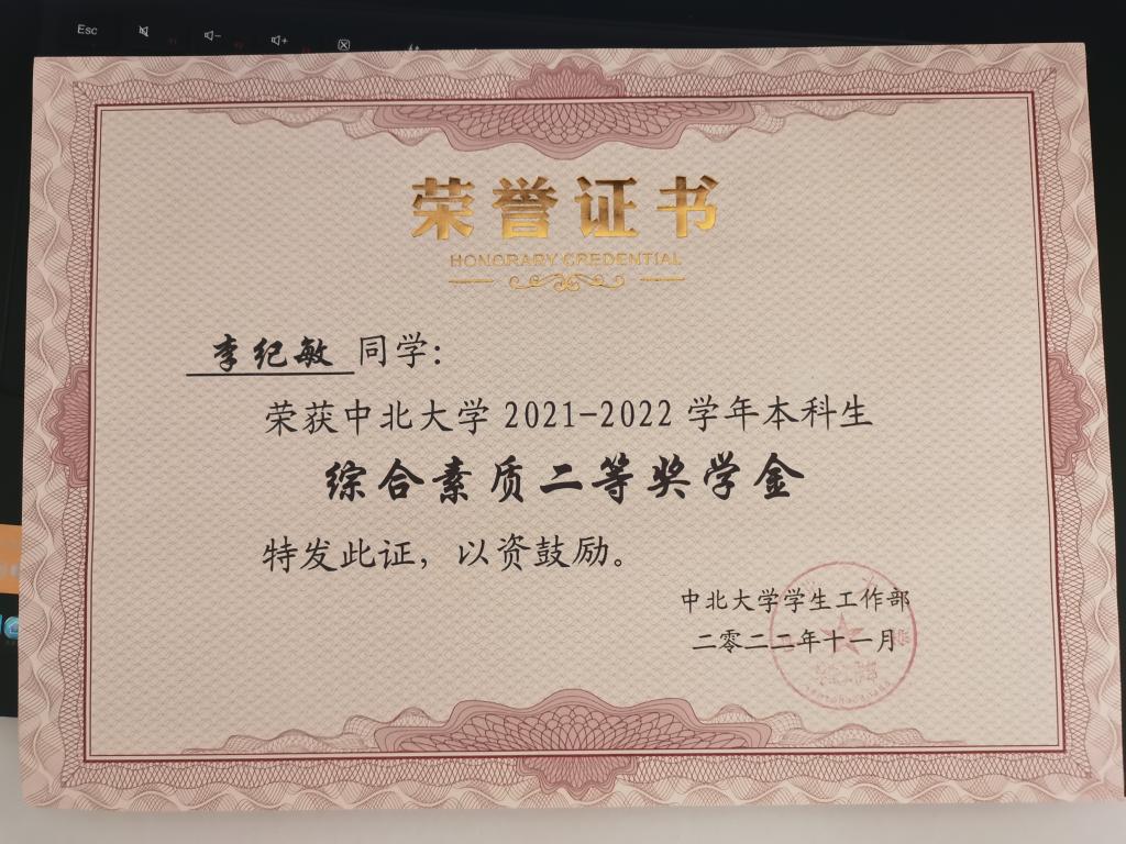 当然学习也没有松懈,在学分绩点上相较上一学年增长了0.3分,获得了大二学年的综合素质二等奖学金和国家励志奖学金。