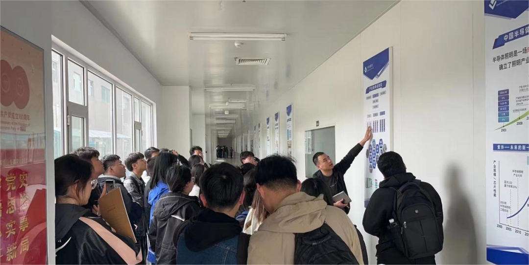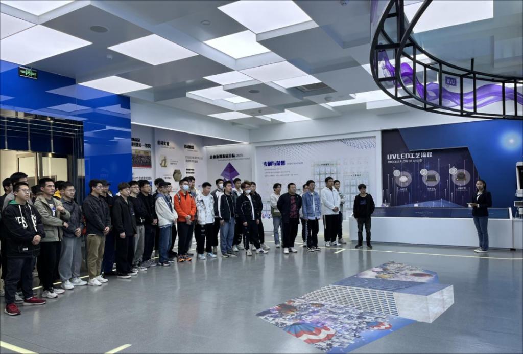 150余名师生走进中科潞安,先后在中科潞安展厅、芯片车间、外延车间、CNAS检测实验室和MOCVD研发室进行参观,并与中科潞安研发工程师深入交流。同学们认真听取了深紫外LED外延、芯片、封装的生产工艺介绍,通过学习公司创始人李晋闽引领我国新型半导体材料与器件研究和产业化的历程,激发了同学们投身半导体和物理事业的创新热情。在创新产品展区,蔚蓝档案