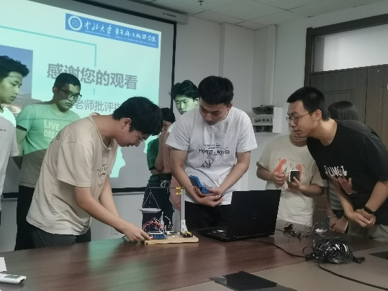 在同学们的答辩结束后,老师们还耐心地询问同学们对这次实训活动的感受,努力完善教学设计,同学们也开诚布公,把自己的真实想法反馈给老师们,相信我们共同的努力和这次活动的宝贵经验必将使将来的实训课程进行地更好。