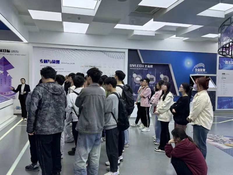 同学们先后在中科潞安紫外展厅、芯片车间、外延车间、CNAS检测实验室和MOCVD研发室,认真学习了深紫外LED外延、芯片、封装的生产工艺,从器件设计、工艺制造、封装测试、产品开发等方面对深紫外LED进行了全产业链学习。