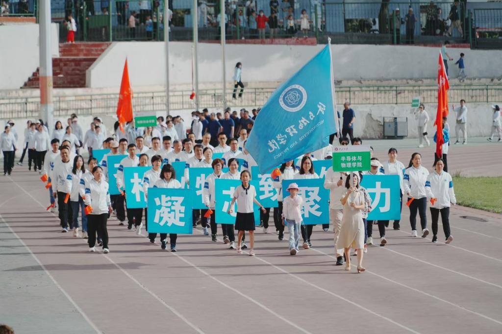 的教师方阵入场。他们身着统一的运动服装,精神饱满,步伐坚定,充分展示了学院教师的风采。