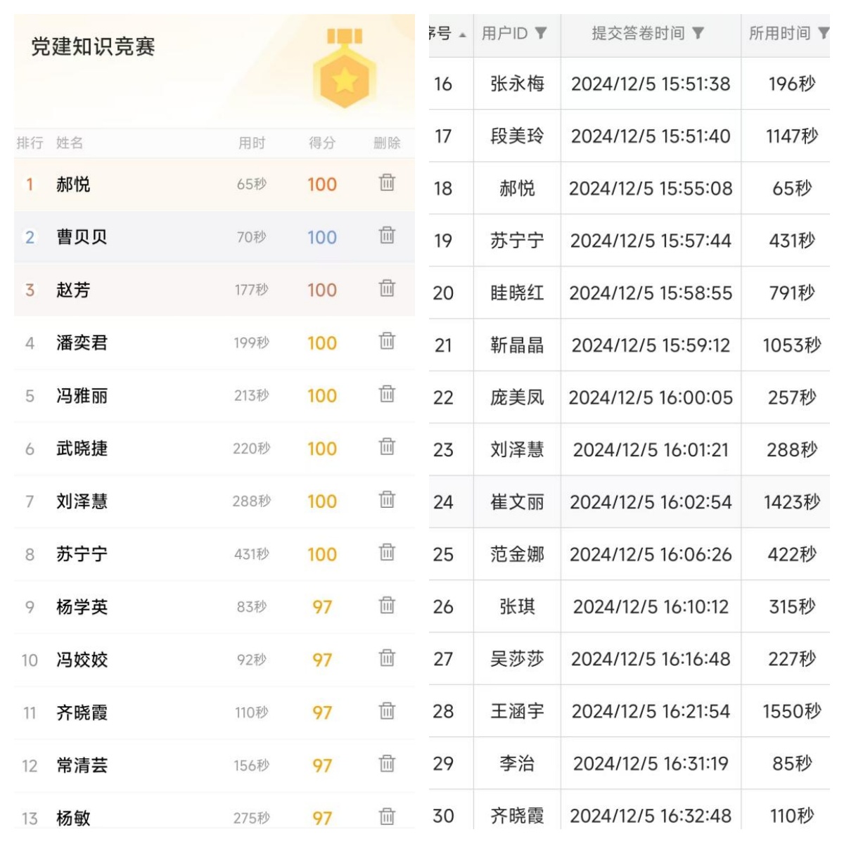 最后,活动进入紧张激烈的知识竞赛环节,竞赛设置了线上党建知识必答和线下抢答两个环节。本次竞赛内容丰富,涵盖党的基本理论、党章党规、党的历史以及二十届三中全会的相关知识,竞赛题目多样,有单选、多选、判断三种类型。竞赛过程中,党员同志们积极参与、认真答题,现场气氛紧张激烈,充分展现了自信从容、昂扬向上的精神风貌。经过激烈角逐,最终评选出一等奖4名奖品为笔记本散热器,二等奖10名奖品为充电宝,对其余参与竞赛答题的党员颁发参与奖U盘一个进行鼓励。