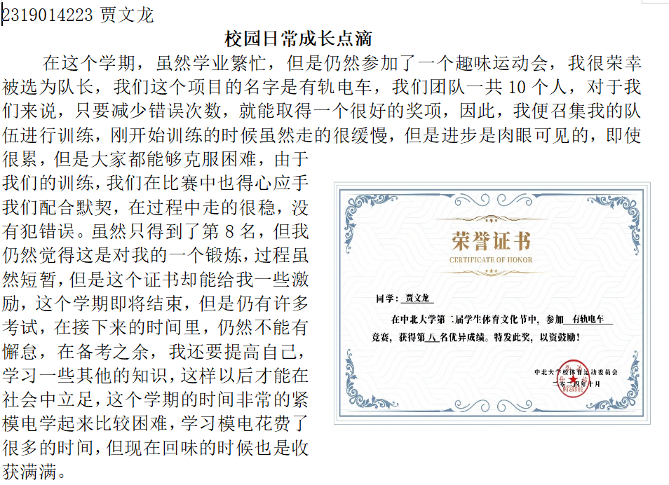 这些收获都成为我人生中宝贵的财富,继续加油!