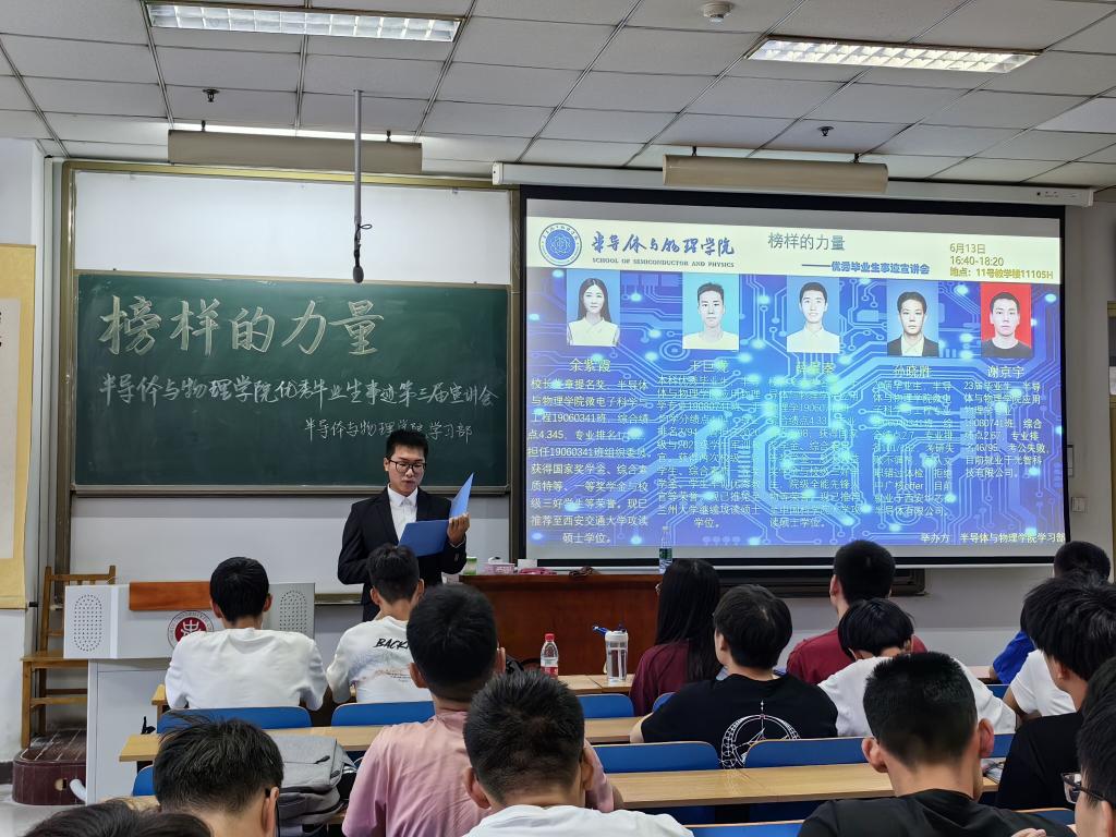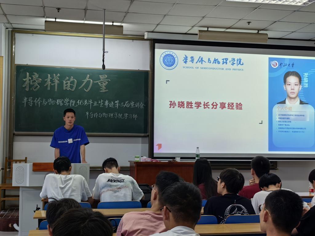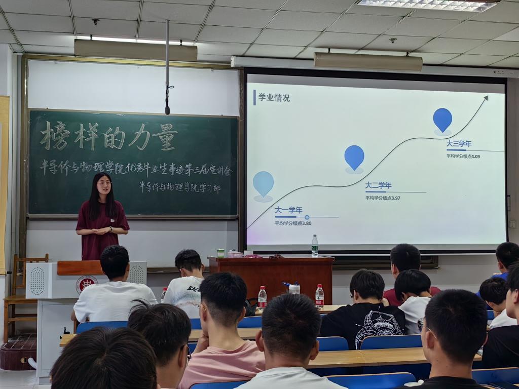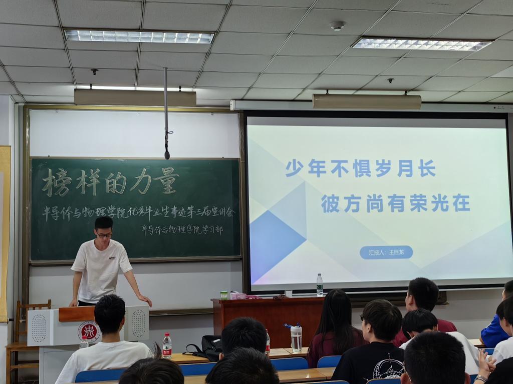 成功举办第三届优秀学生事迹宣讲会--榜样的力量。本次活动邀请了优秀毕业生余紫霞、王巨龙、薛景泰、孙晓胜、谢京宇作为出席嘉宾,大一、大二学生参加了本次活动,活动由王浩然同学主持。